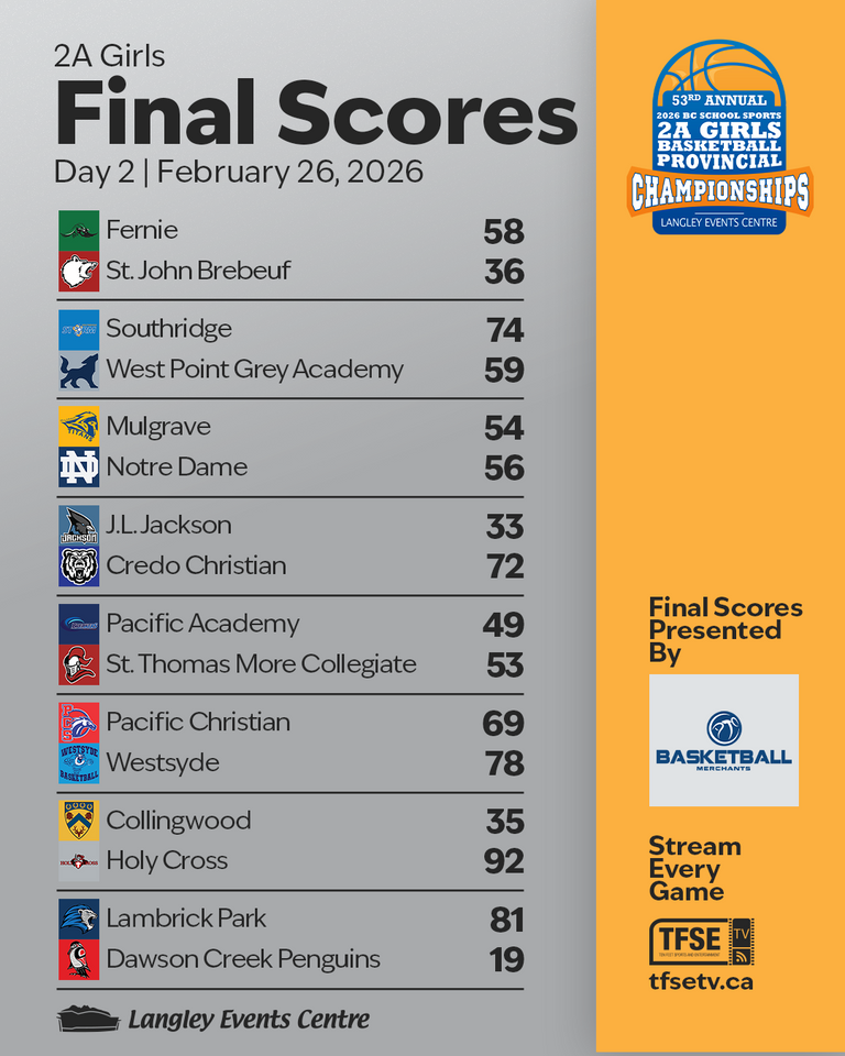 Tickets are available for purchase and every game of all four championships is also available to stream through pay-per-view at TFSETV.ca. Daily schedules, scores and news can also be found at www.bchighschoolbasketballchampionships.com.