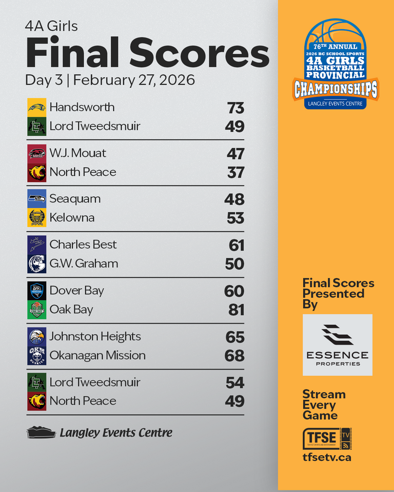 With three days in the books at the BC School Sports Girls Basketball Provincial Championships, eight teams remain in the hunt for provincial glory in their respective tiers as the four-day, 64-team, 128-game championships gets set for its conclusion.