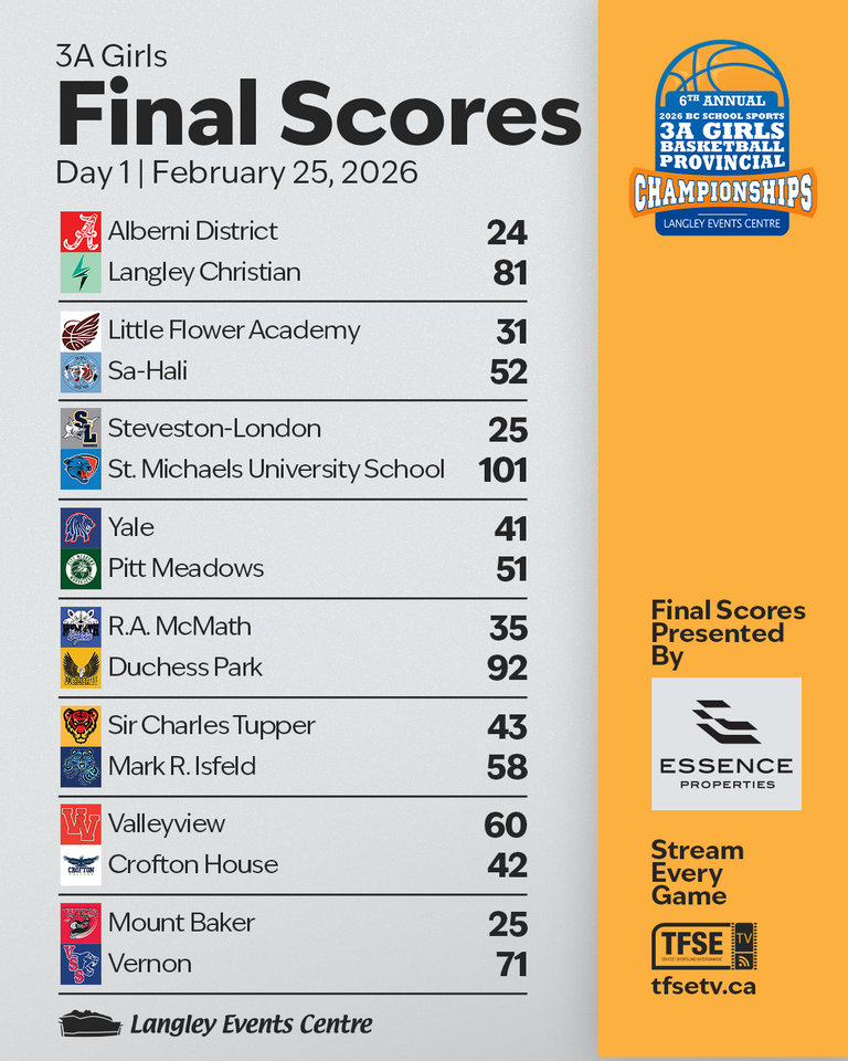 Tickets are available for purchase and every game of all four championships is also available to stream through pay-per-view at TFSETV.ca. Daily schedules, scores and news can also be found at www.bchighschoolbasketballchampionships.com.