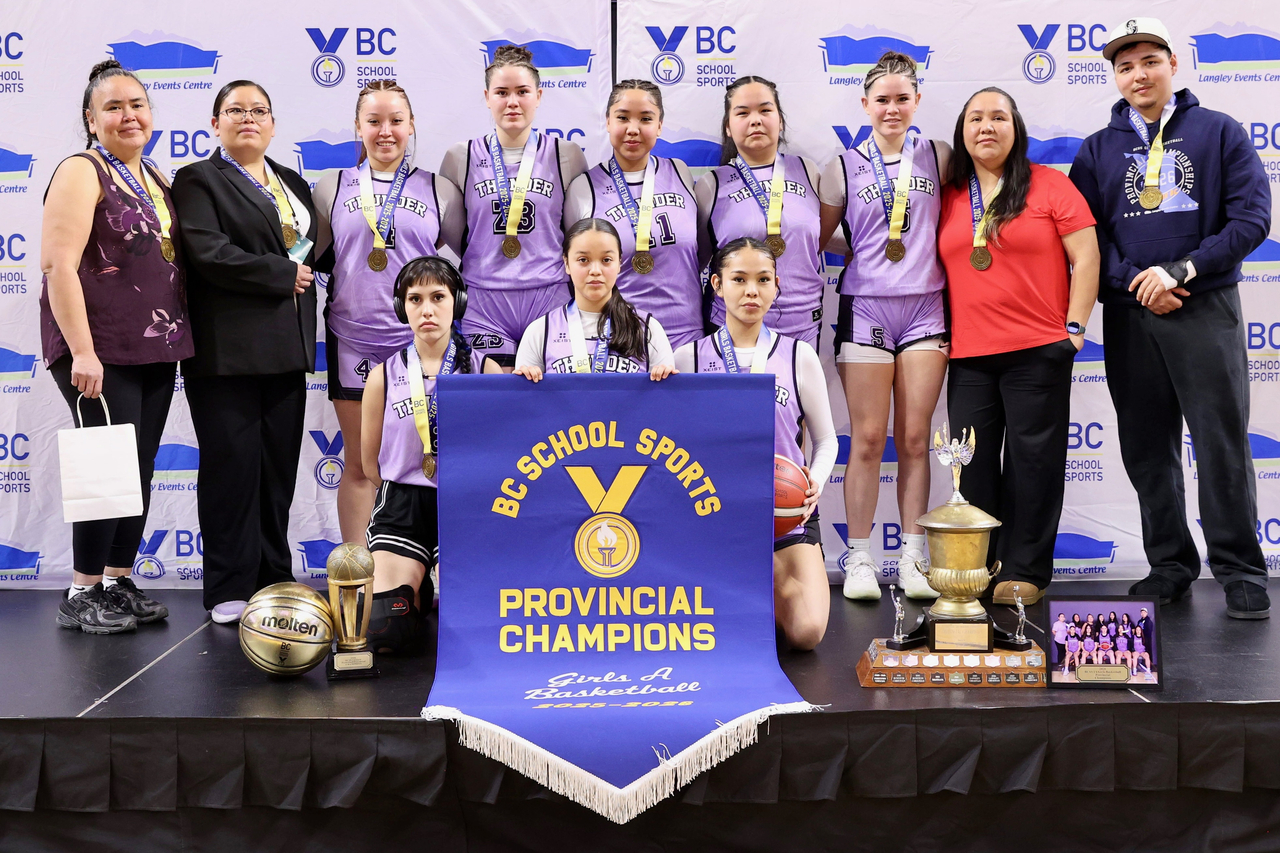 The Acwsalcta Thunder are the 2026 BC School Sports 1A Girls Basketball Provincial Tournament champions. Garrett James photo