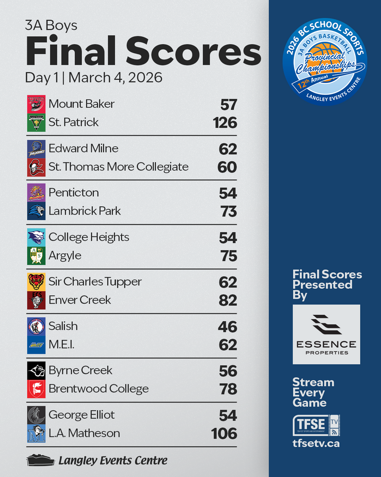 Day 1 is complete at the BC School Sports Boys Basketball Provincial Championships.
